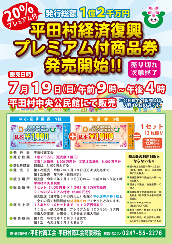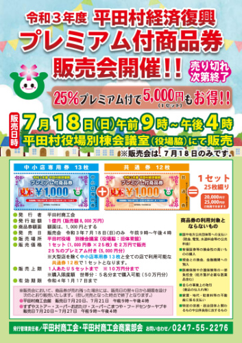 令和3年度 平田村経済復興プレミアム付商品券販売会開催!!