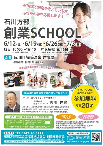 創業を予定している方や将来的に創業を考えている方、創業SCOOLに参加しませんか、参加希望の方はチラシ表面に記載の申込専用QRからお申込み下さい。お申込みお待ちしております。